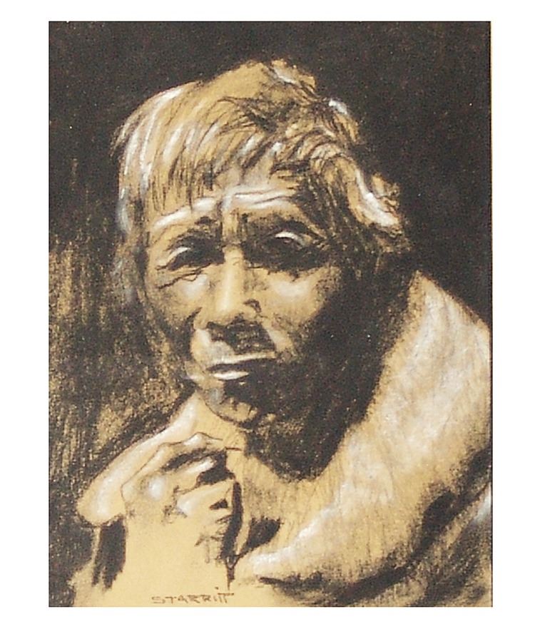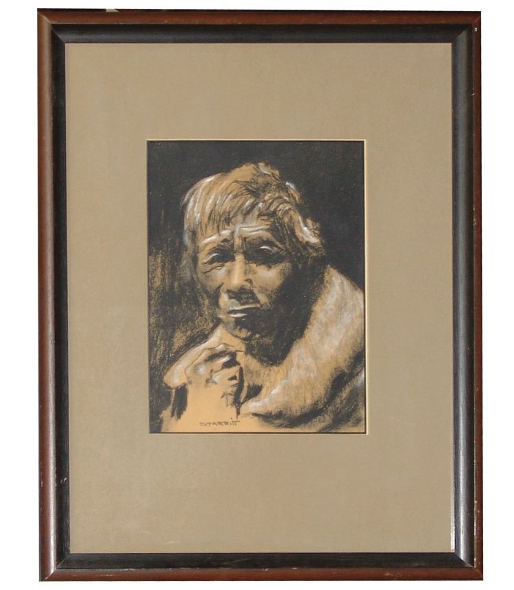 Small signed original pastel and charcoal on colored art board of a Karuk gentleman. Very good condition.,Ca. 1970s-1980s,10" x 7-1/2" (19" x 17" framed)