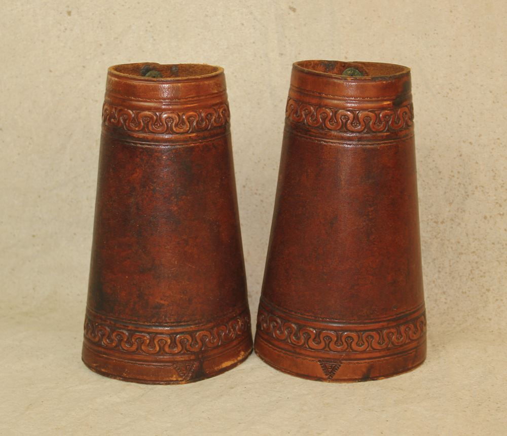 Very nice pair of rarely seen cuffs, with interesting border tooled pattern and beautiful patina.