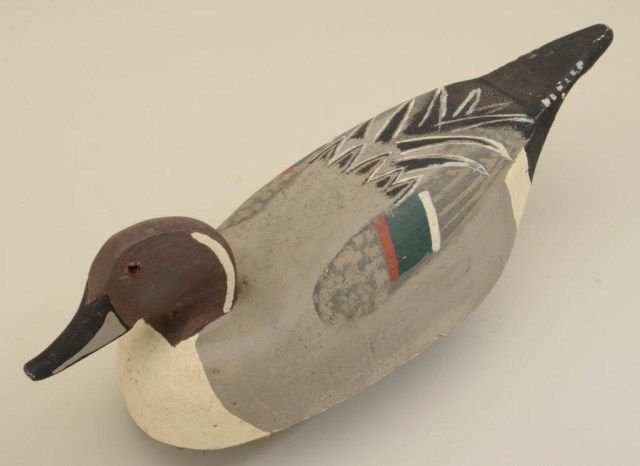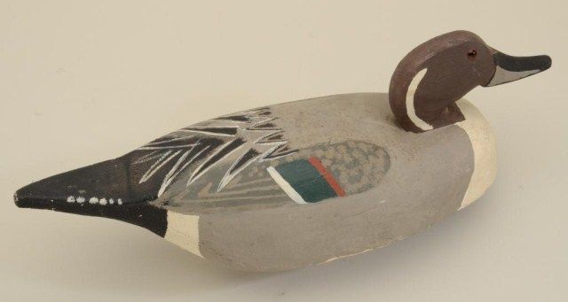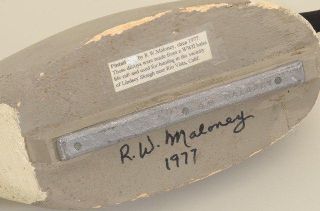 R.W. Maloney signed duck decoy dated 1977 made from balsa, WW II vintage. Est.: $100-$300.