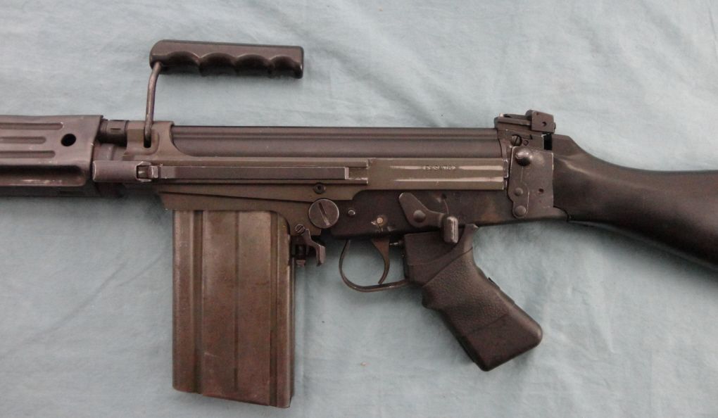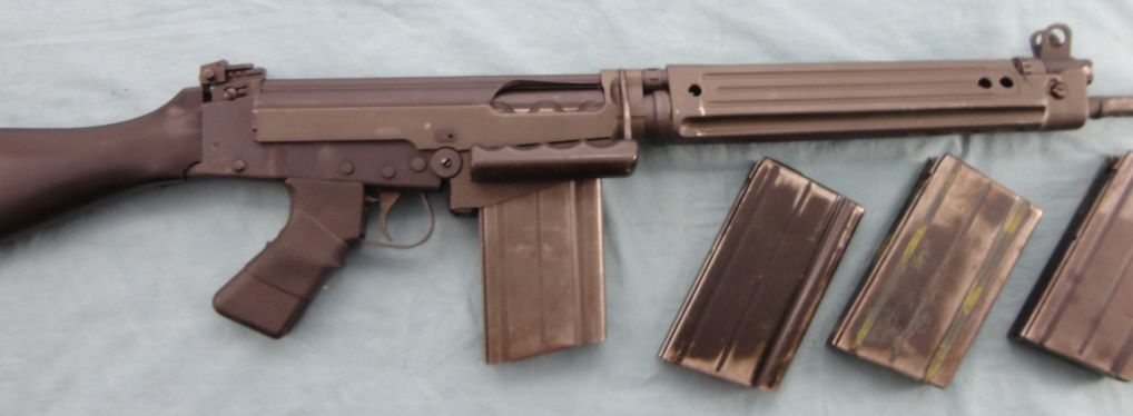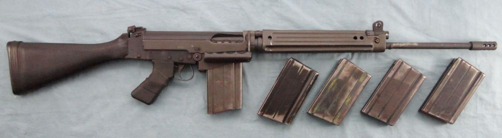 #AD6321232; 308 cal. receiver mfg. by IMBEL & imported by CAI. Approx. 22" bbl. w/flash hider. Stamped sheet metal, handguard w/some dents. Complete w/4 extra magazines. Mechanically seems to function fine.