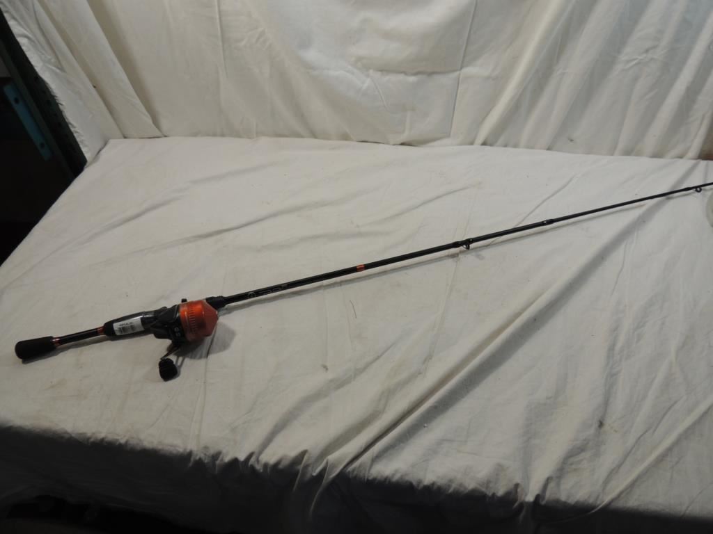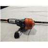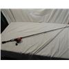 FISHING POLE AND REEL, FISHING POLE FISHING EQUIPMENT, FISHING ACCESSORIES, FISHING POLE, AS SHOWN SEE PHOTO FOR MORE DETAILS.
