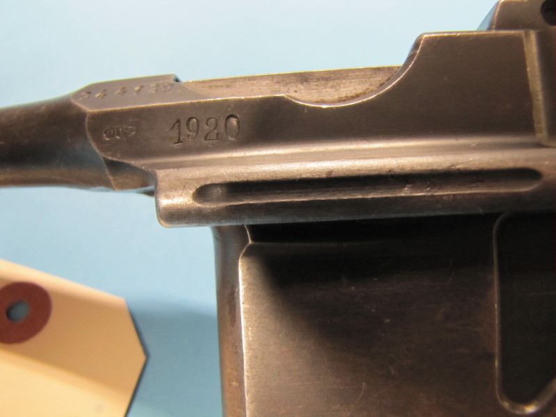 R2--- RESTRICTED -- MAUSER MODEL 1896 " BROOMHANDLE MAUSER PISTOL" - STAMPED 1920 - 7.63 CAL SEMI AUTO 5 5/8" BARREL 32 GROOVES ON HANDLE MATCHING SERIAL #'S