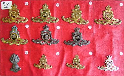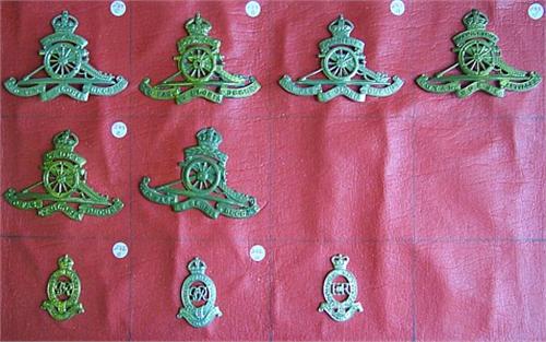 RA and RHA cap badges, George V to E.II, various types, with various metal combinations and fittings, inc. Territorial and Volunteer, plus restrikes of field service type badges, etc. (20)