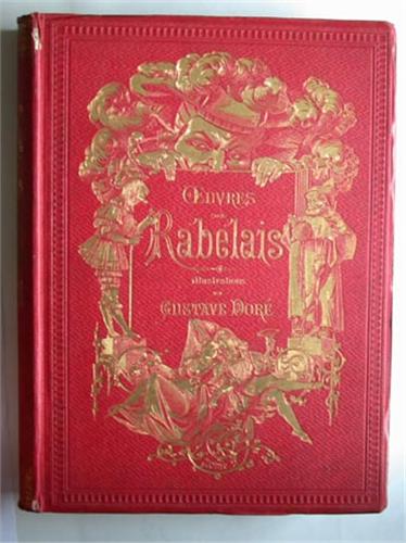 RABELAIS, François.- Oeuvres. Texte collationné sur les éditions originales avec une vie de l'auteur, des notes et un glossaire. Illustrations de Gustave Doré. Paris, Garnier frères, 1873. 2 vol. in-f° (qqs ff. lim. très lég. pliés, rousseurs sur les gouttières sinon intérieur frais). Cartonnage d'édition : pleine percaline rouge gaufrée or pour les fers spéciaux inspirés par les illustrations de l'ouvrage, tranches dorées (mors usés près des coiffes sinon frais).
