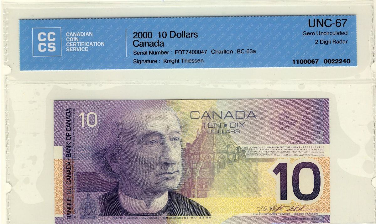 RADAR $10 BC-63a #FDT7400047 CCCS UNC67