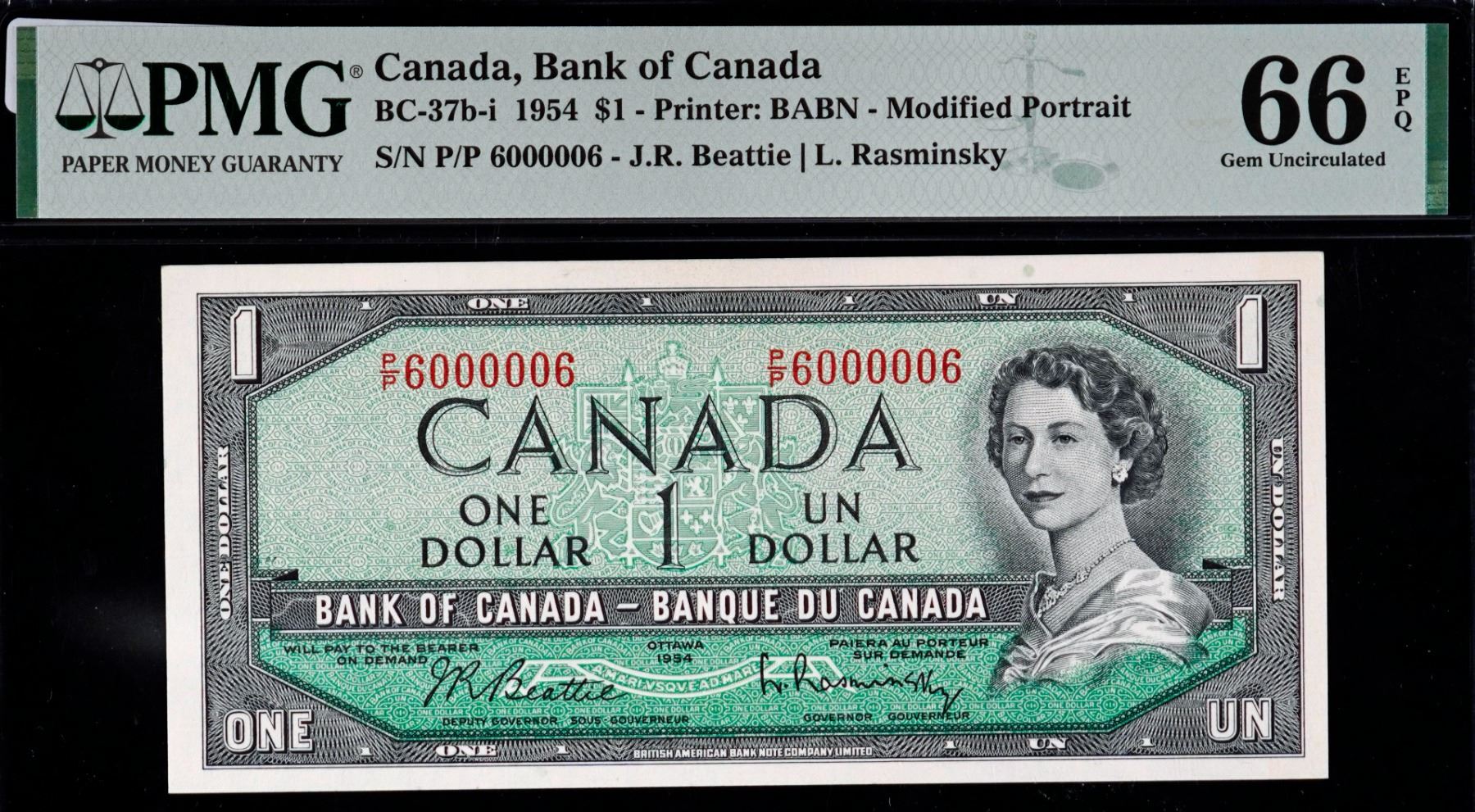 RADAR;1954 $1 BC-37b-i N1-ii #P/P 6000006 PMG Superb Gem Uncirculated-66 EPQ