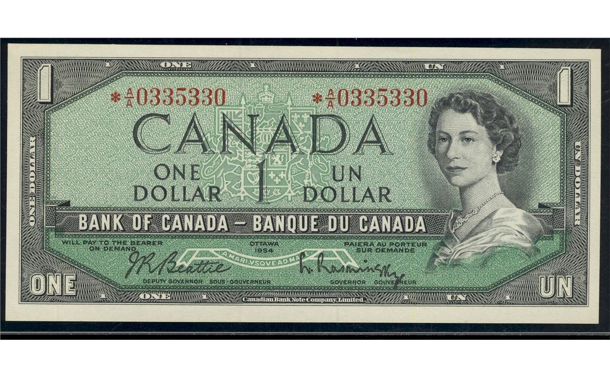 RADAR 1954 $1 BC-37bA *A/A0335330 PCGS UNC65PPQ, very scarce on a replacement.