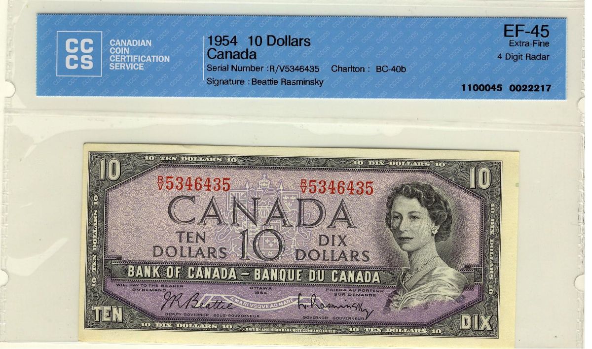 RADAR 1954 $10 BC-40b #RV5346435 CCCS EF45