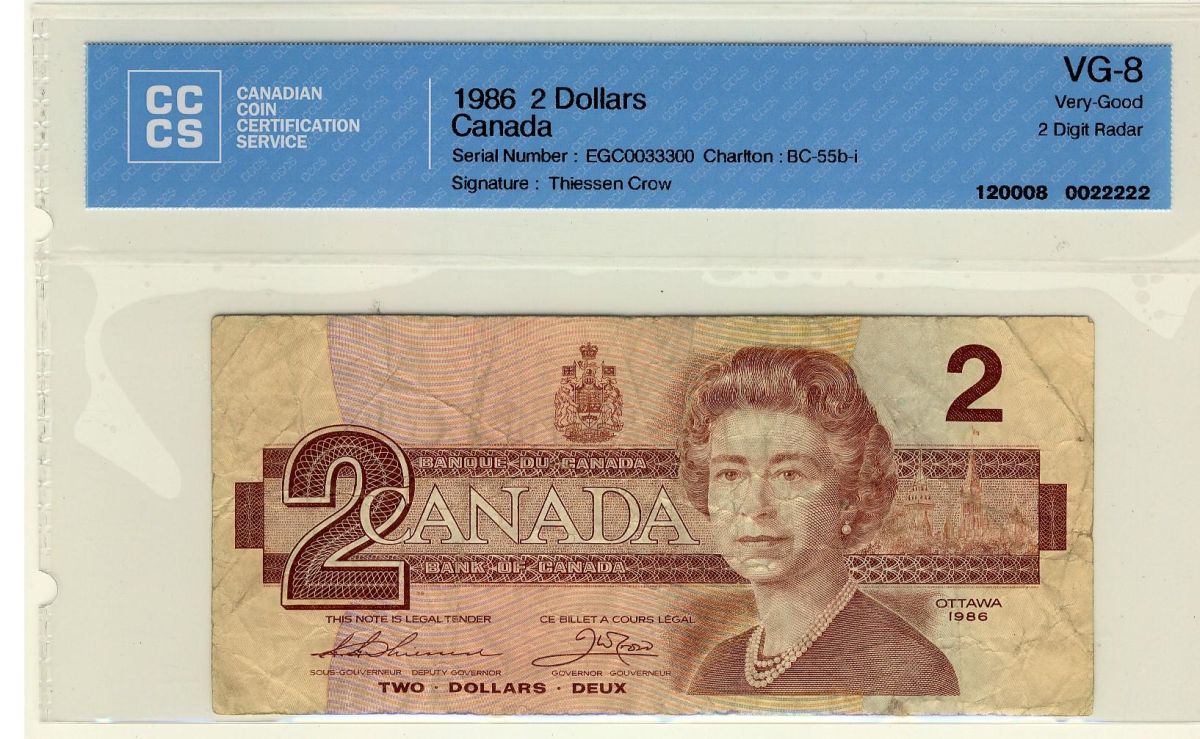 RADAR 1986 $2 BC-55b-i #EGC0033300 CCCS VG8