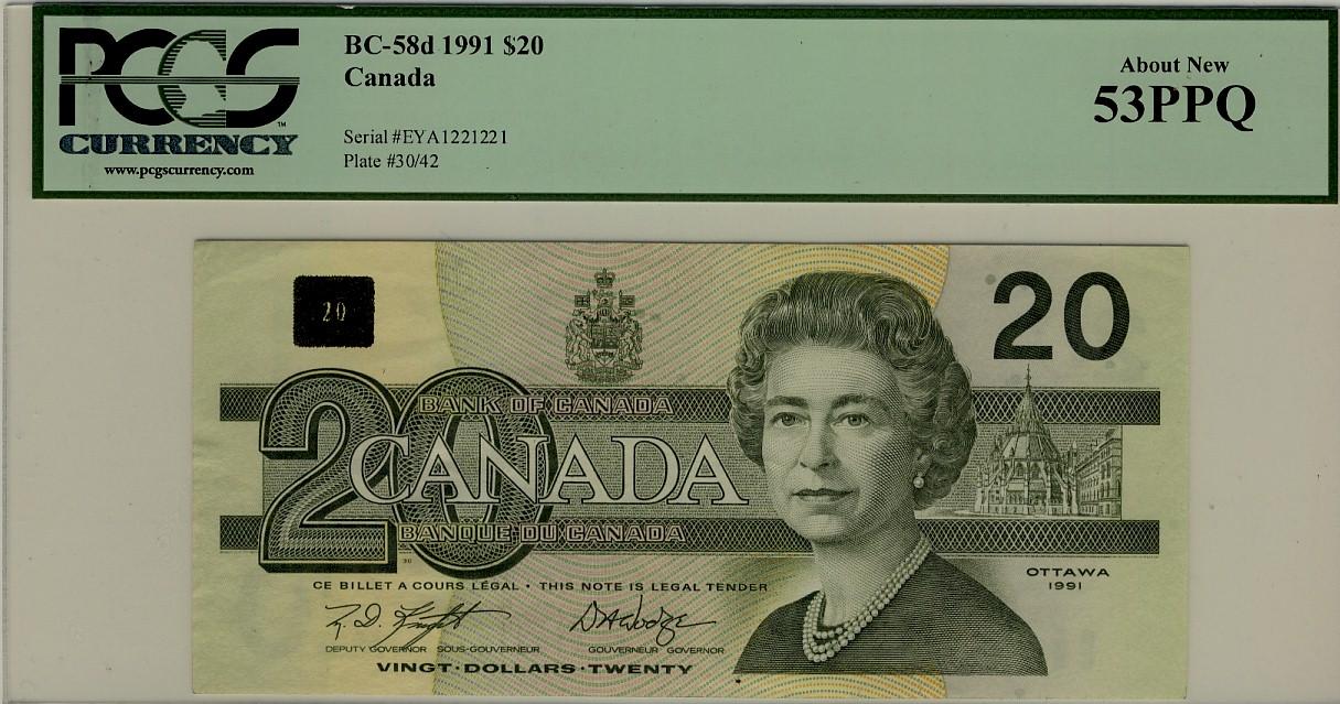 RADAR 1991 $20 BC-58d EYA1221221 PCGS AU53