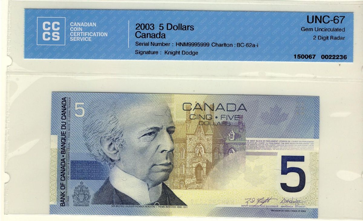RADAR 2003 $5 BC-62a-i #HNM9995999 CCCS UNC67