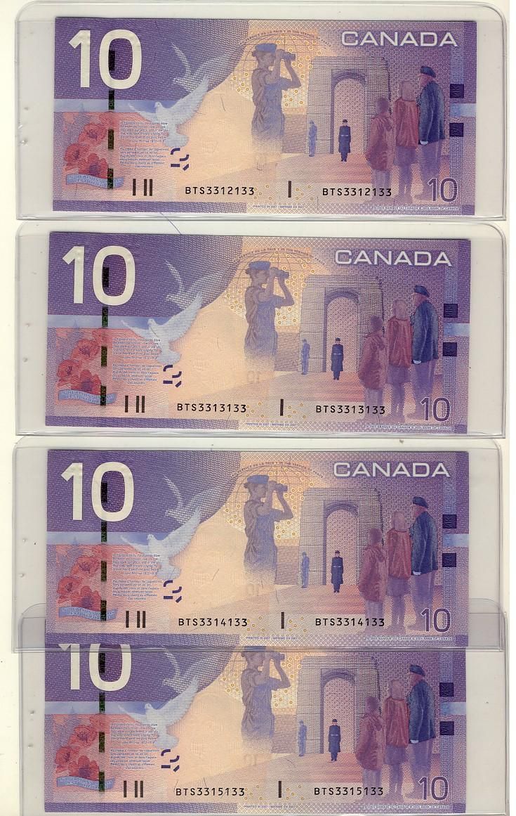 RADAR, 2005 $10 BC-68a #BTS3312133, #3313133, 3314133 & 3315133. Lot of 4 notes all CH UNC.