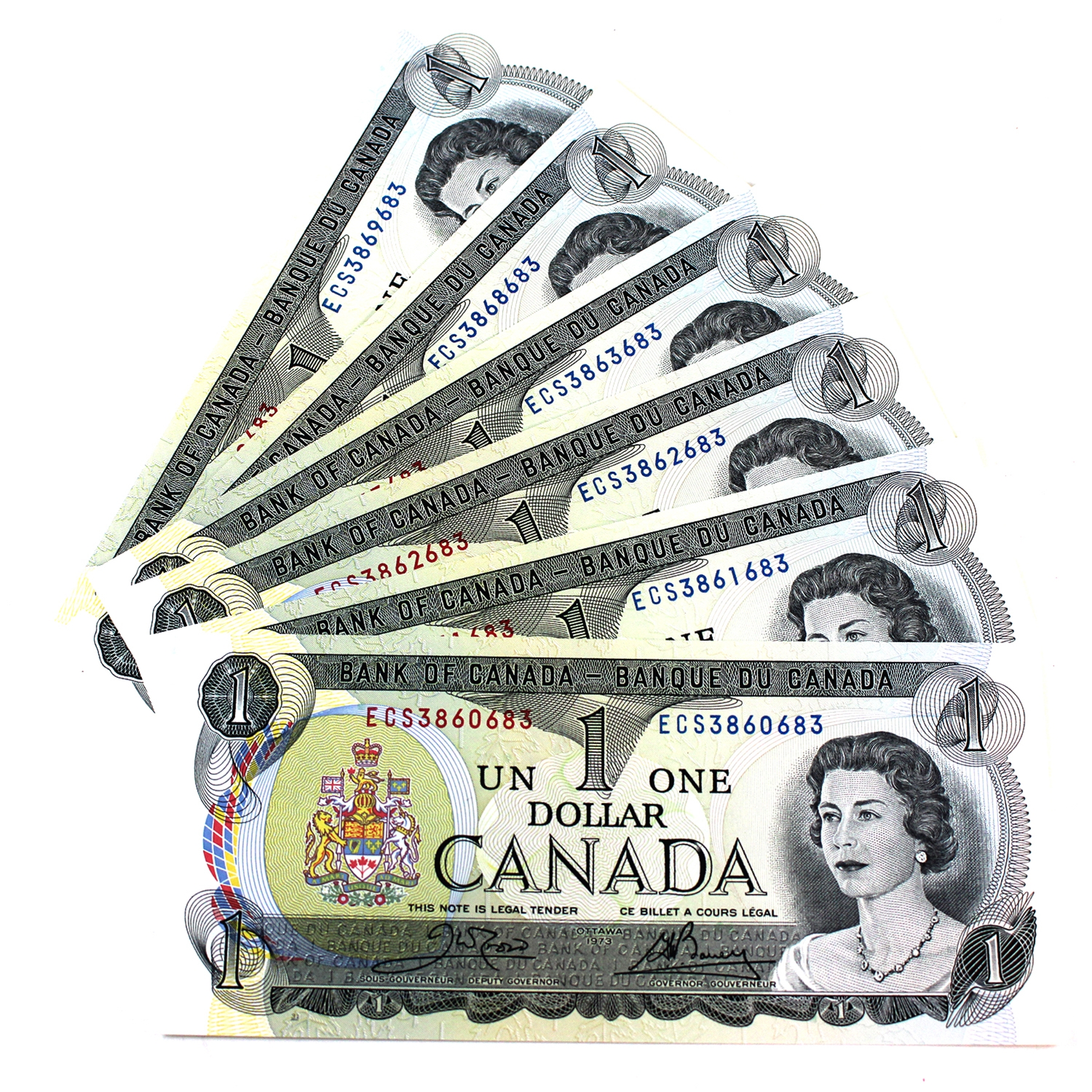 INCLUDES: Group of four consecutive notes with SN: ECS3860683, "3861683, "3862683 & "3863683 and group of two consecutive notes ECS3868683 & "3869683. 6pcs.
