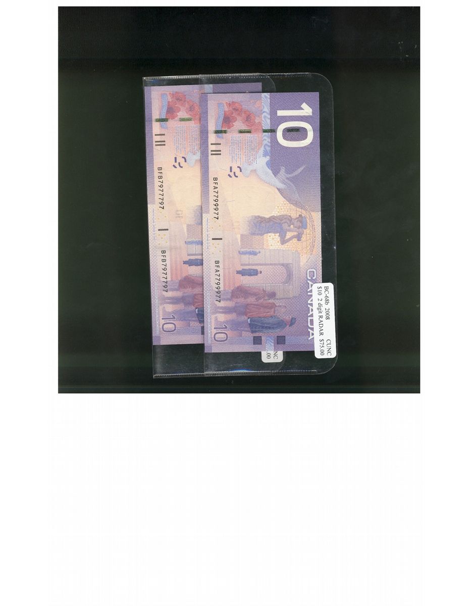 RADAR Lot; 2005 $10 BC-68b #BFA7799977 & BFB7799977. Lot of 2 x 2 digit RADAR in UNC or better condition.