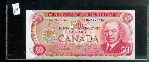 RADAR NOTE BC-51b $50 1975 Crow-Bouey EHG7493947. Gem uncirculated! Scarce on high denomination.