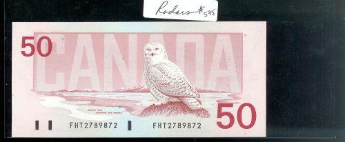 RADAR NOTE BC-59c $50 1988 Knight-Thiessen FHT2789872. Gem uncirculated! Scarce on high denomination.