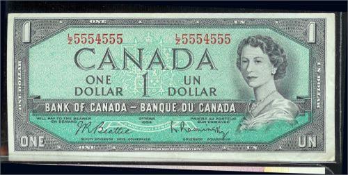 RADAR NOTE "Two digit number" BC-37bi $1 1954 Beattie-Rasminski L/Z5554555, EF, Scarce!