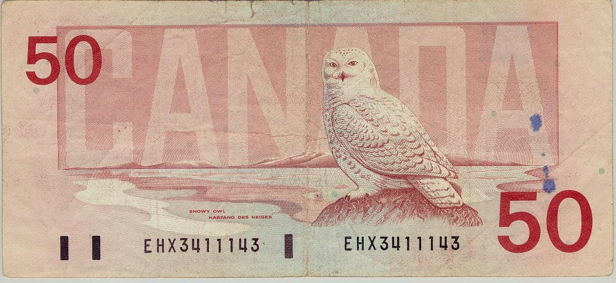 RADAR/REPLACEMENT 1988 $50 BC-59aA /EHX3411143 PMG F15. Light Tear and ink mark. Rare and seldom seen.