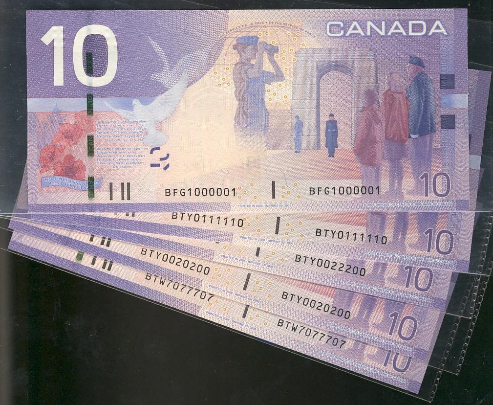 RADARS, 2008 BC-68b. Lot includes #BFG1000001, BTY0111110, BTY0022200, BTY0020200 & BTW7077707. Lot of 5 Original UNC notes.