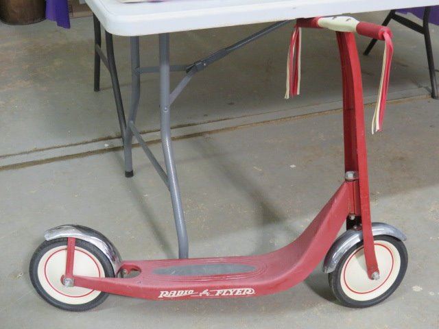 RADIO FLYER SCOOTER (CHROME FENDERS) *37" LONG X 19" HIGH* (VINTAGE)