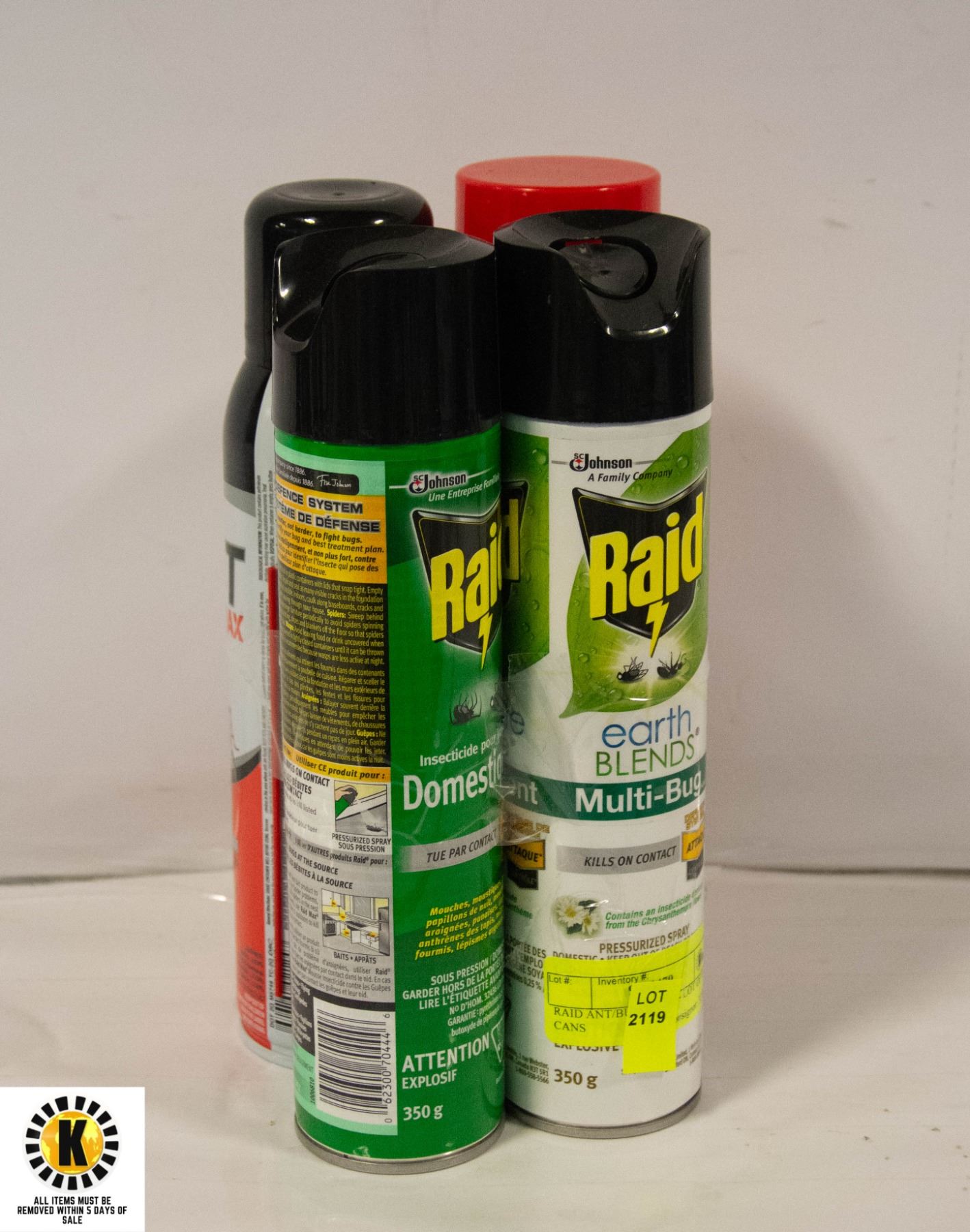 RAID ANT/BUG KILLER- LOT OF 4 CANS