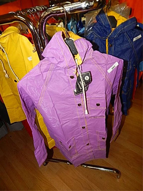 RAIN GEAR - KIDS REVERSABLE RAINCOAT - SIZE 6X PURPLE AND YELLOW RETAIL $20 - BUY NOW IN HOUSE - $10 EA SET