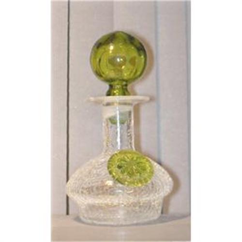 <tr><td>Title:RAINBOW #C334 CRACKLE GLASS GREEN TRIM DECANTER</td></tr>
