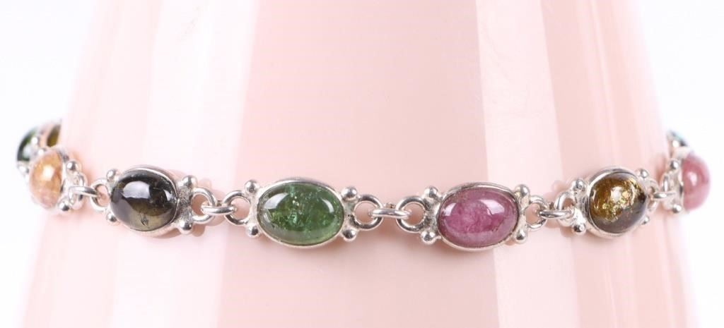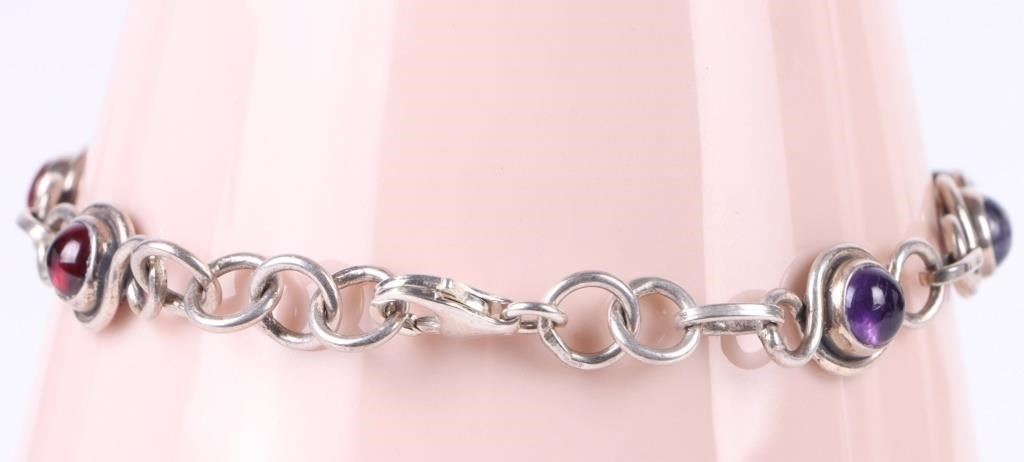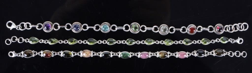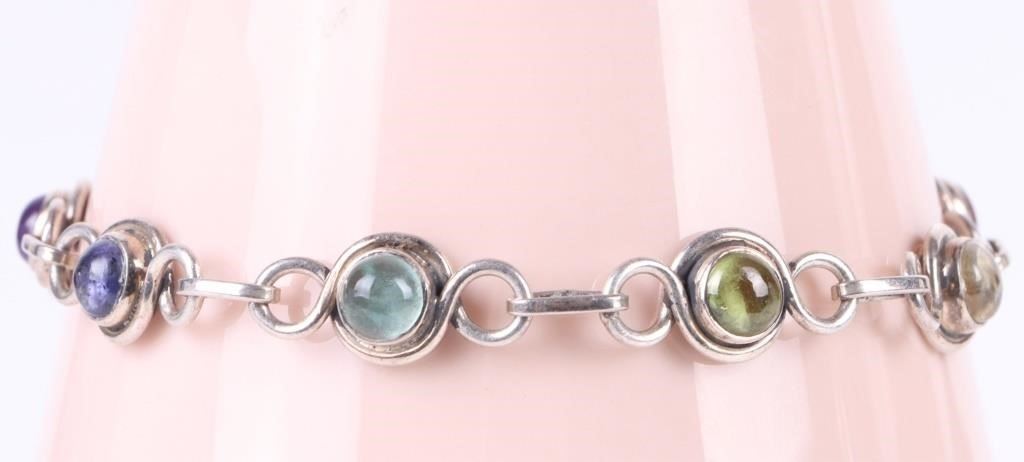 Rainbow gemstone sterling silver bracelets to include peridot, amethyst, onyx, citrine, jasper, and more.