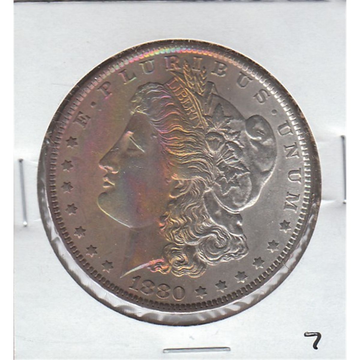 RAINBOW TONING 1880 O $1 MORGAN UNC STUNNING COIN!!!