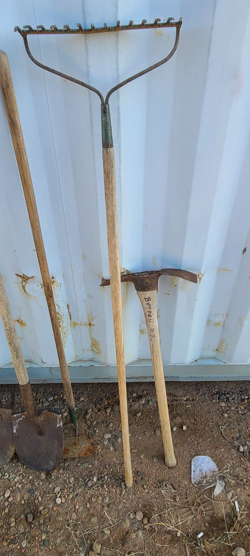 RAKE, SHOVEL, SPADE, PICK AXE, HO