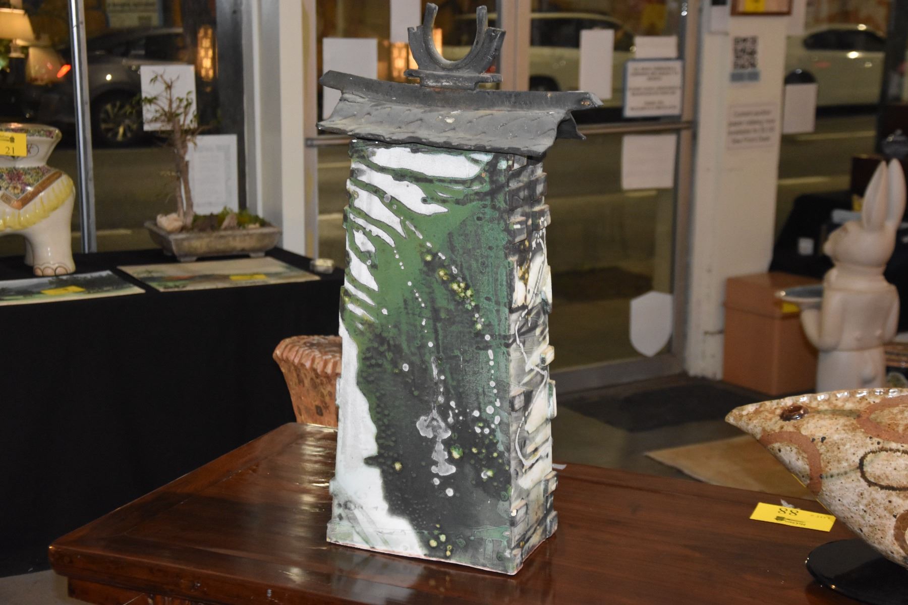 RAKU TEMPLE BY ARABELLA ARK (FORMERLY GAIL BAKUTIS) (15" X 27" X 7 1/2")