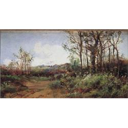 RAMIREZ ( Escuela española, S. XX )."Paisaje" Oleo/tabla. 18 x 32 cms.Firmado en el ngulo inferior izquierdo. Salida Euros 950 - Salida PTS 158.067
