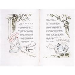 20 eaux-fortes originales de Louis Legrand : 16 en couleurs au repérage ou à la poupée (dont la couverture et 4 planches formant double page) et 4 gravures en noir, les 13 hors-texte étant protégés par des serpentes légendées. Texte parsemé de 51 dessins de Legrand gravés sur bois par G. Lemoine.