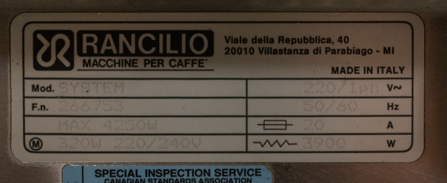MODEL # SYSTEM, 4250 WATTS MAX, 320 WATTS, 220 / 240 VOLTS, 22011PH, 50 / 60 HZ, 20 AMPS, 3900 WATTS, 30" X 18" X 18"