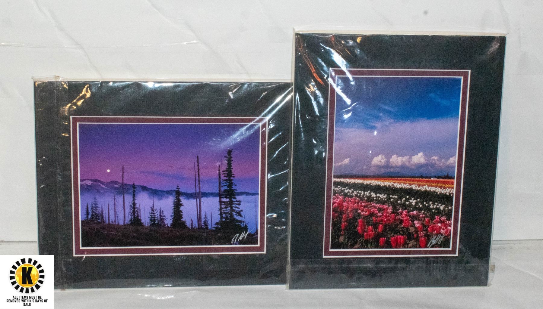 PROLIFIC AMERICAN LANDSCAPE PHOTOGRAPHER. TITLED 'MOONRISE FROM THE WONDERLAND TRAIL' & 'COLORS OF TULIP FIELDS'. MATTED NEW IN WRAP.