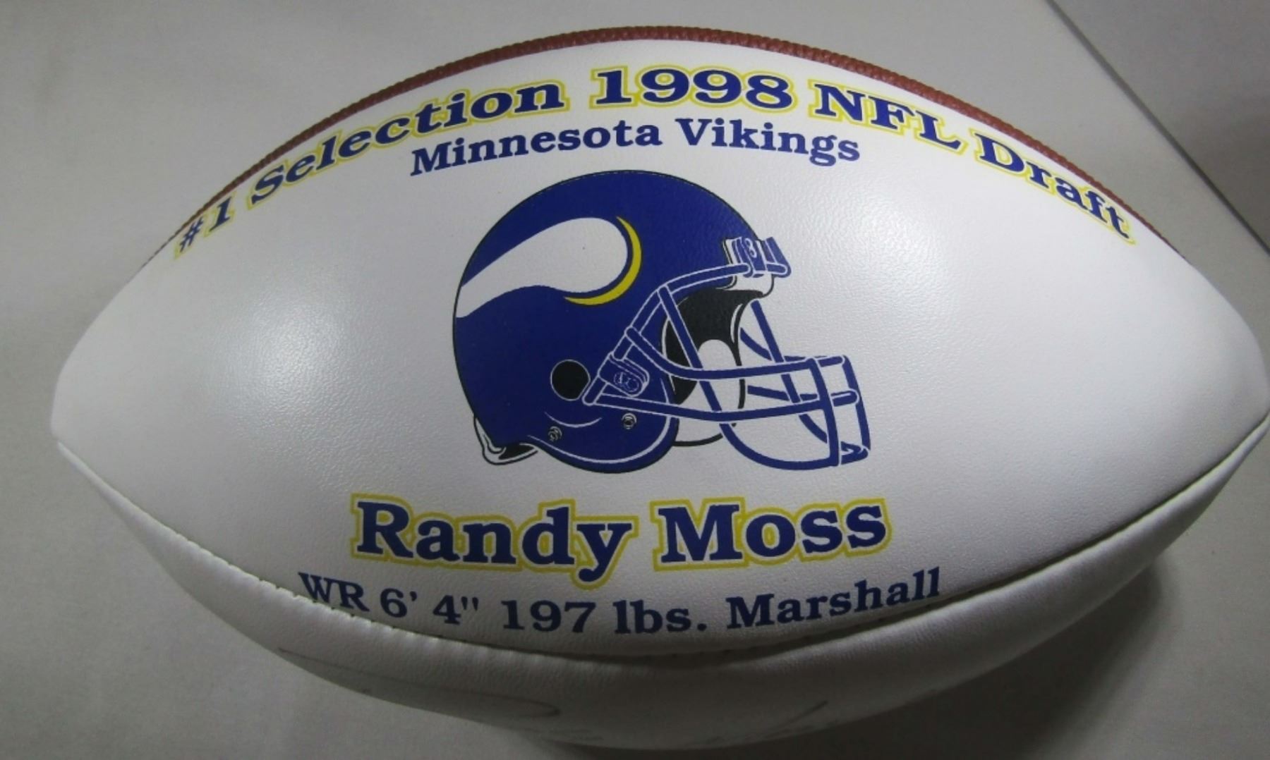 #1 SELECTION 1998 NFL DRAFT MINNESOTA VIKINGS RANDY MOSS AUTOGRAPHED FOOTBALL / COA