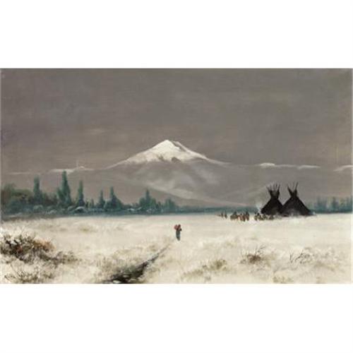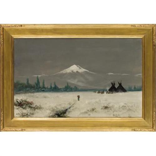 <B>RANSOM GILLET HOLDREDGE (American, 1836-1899)</B></I><BR><I>Indian Encampment</B></I><BR>Oil on canvas<BR>21 x 34 inches (53.3 x 86.4 cm)<BR>Signed lower left: <I>R.G. Holdredge</B></I><BR> <B>Condition Report:</B> Canvas has been relined, scattered inpainting and repair left canvas.<BR><BR><b>Shipping:</b> Requires 3rd Party Shipping (<a target="_blank" href="http://www.heritageauctions.com/common/shipping.php">view shipping information</a>)