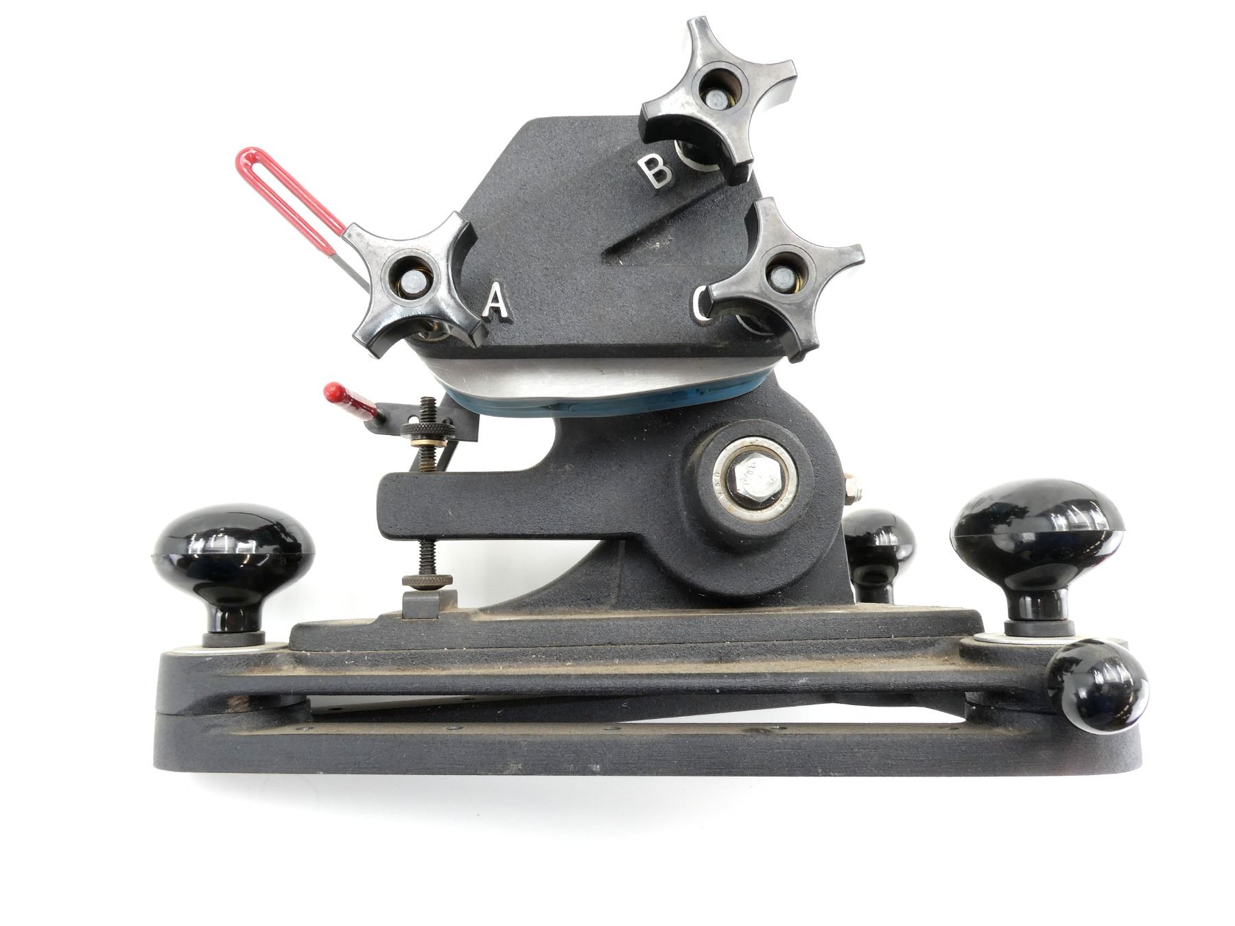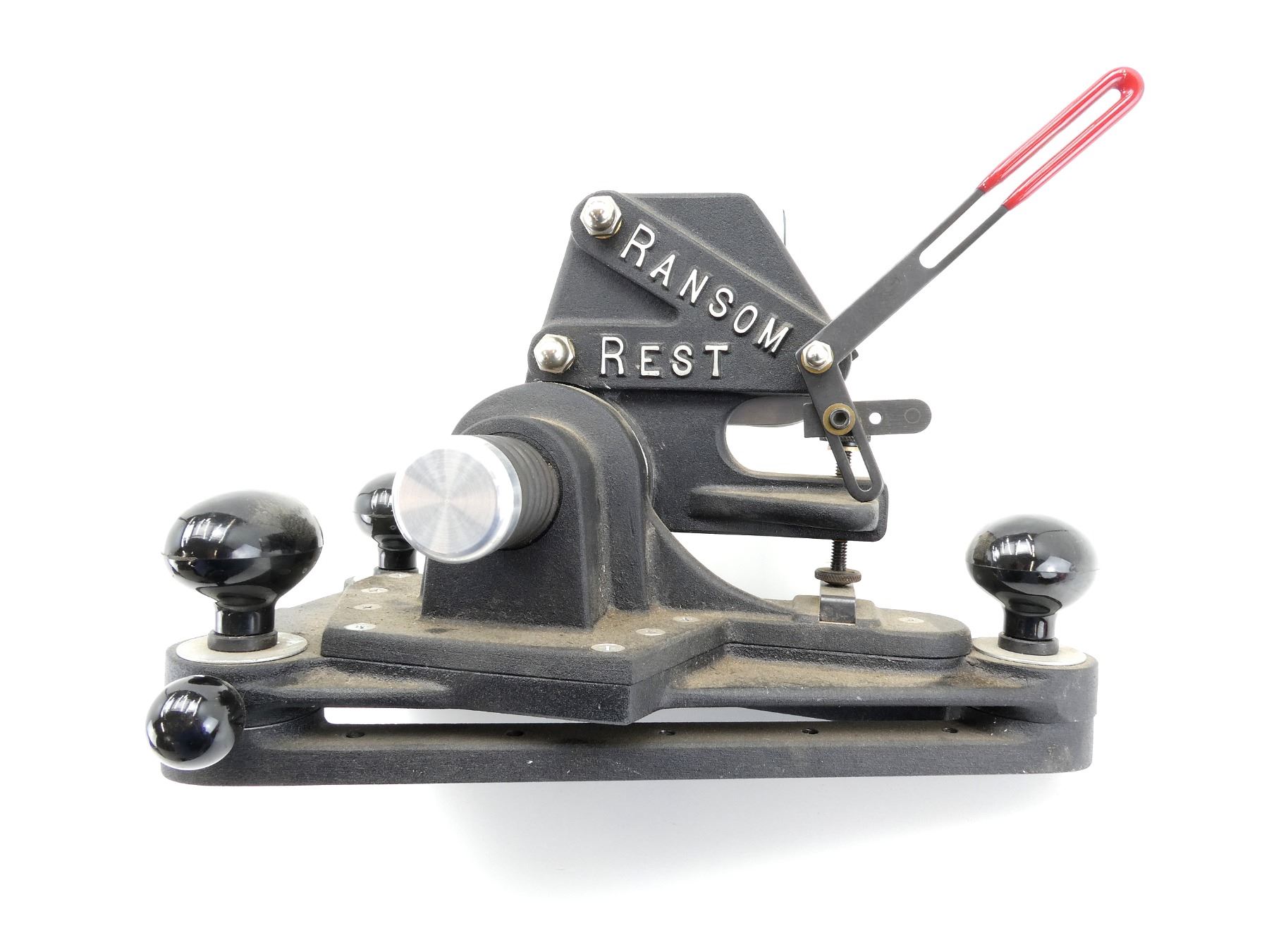 (1) RANSOM PISTOL REST UNIT WITH .45 ACP SEMI-AUTO GRIP INSERTS ATTACHED, USED TO TEST & CONFIRM ACCURACY OF HANDGUNS WITHOUT TOUCHING THE GUN, UNTESTED, APPROX.. 13" X 10" X 8.5". SEE PHOTOS.