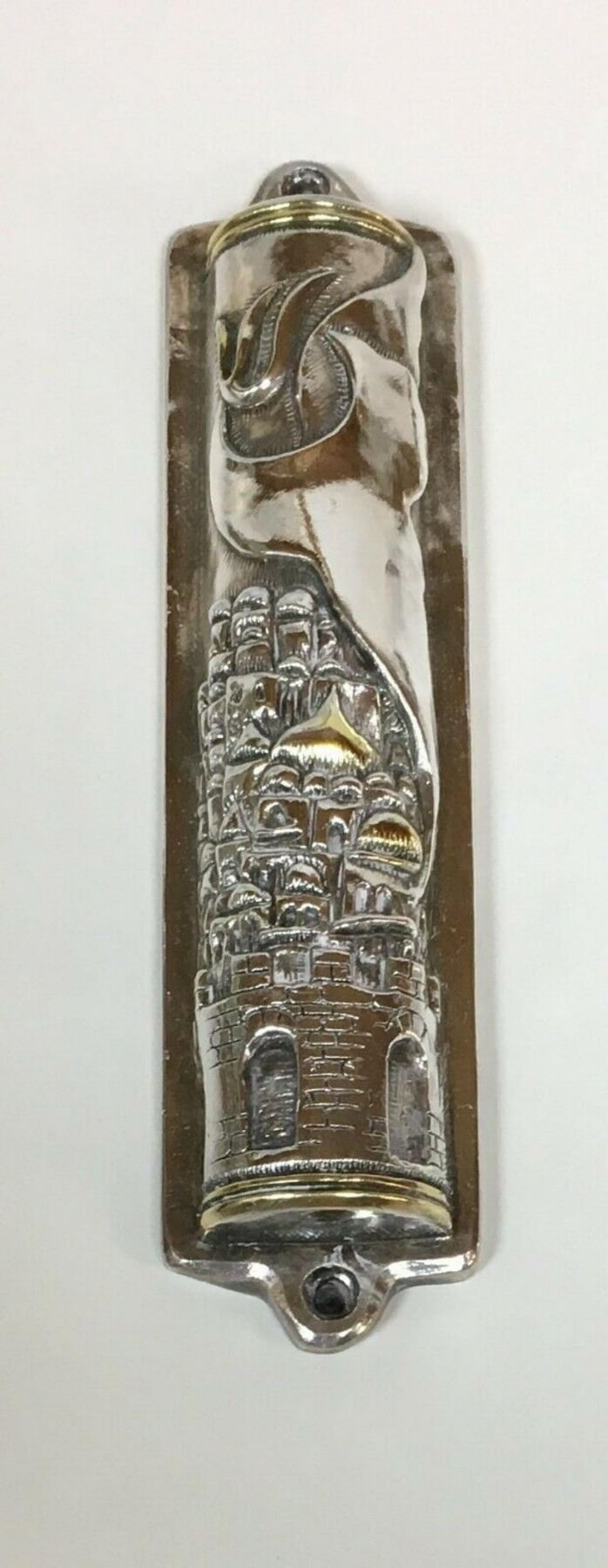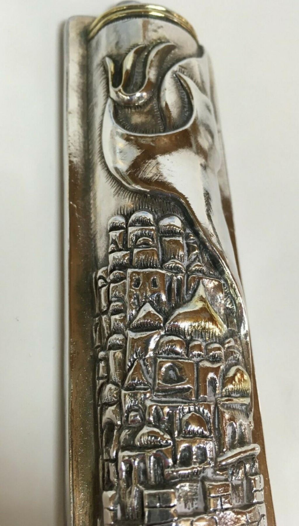 ARTIST: RAPHAEL ABECASSIS. TITLE: MEZUZAH. MEDIUM: VINTAGE 925 STERLING SILVER. SIZE: 6.5" X 2" INCHES. PLEASE NOTE THIS ITEM COMES WITHOUT ANY SCROLLS