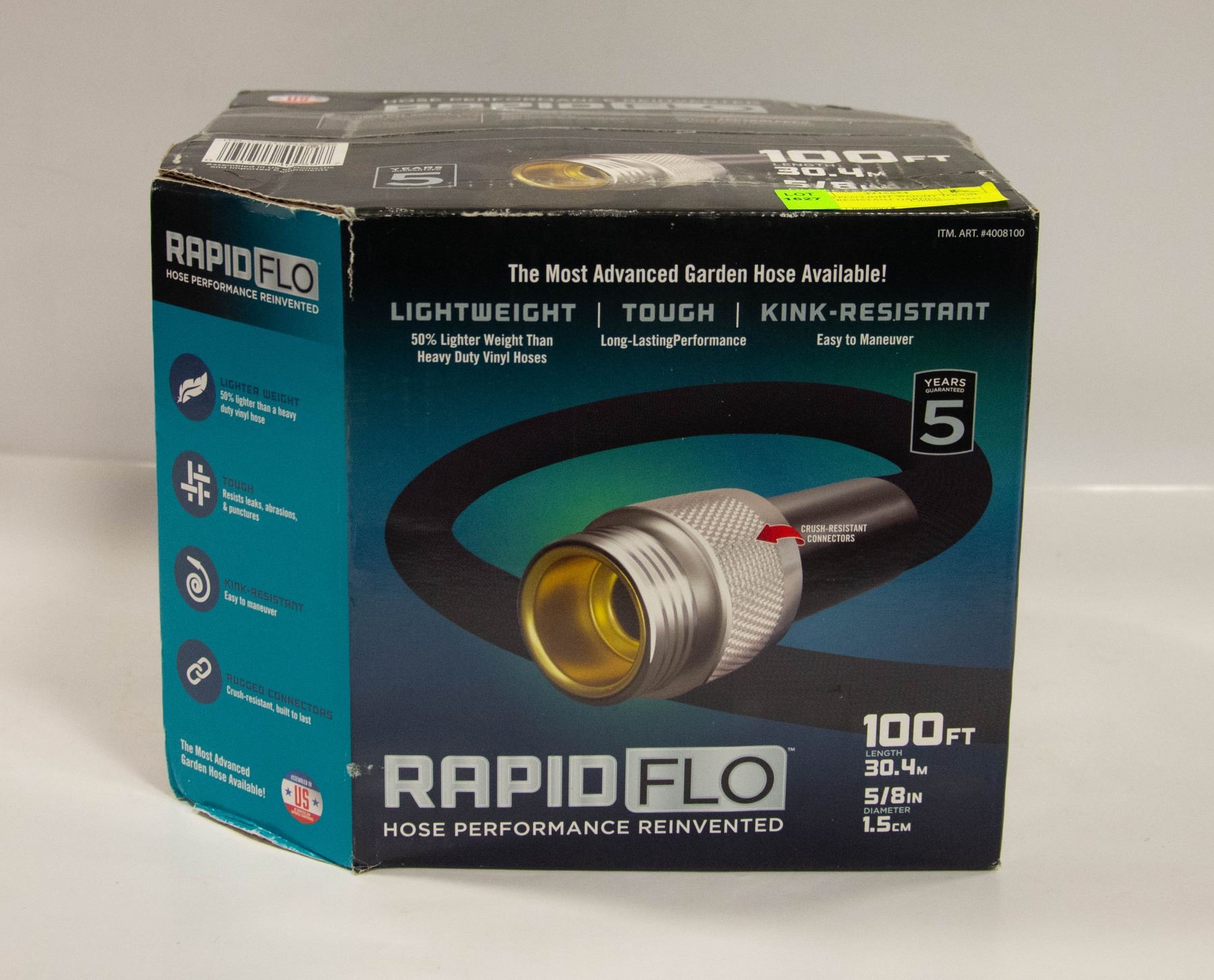 THE RAPID FLO GARDEN HOSE IS THE PERFECT PRODUCT FOR HOMEOWNERS WHO WANT THE PERFORMANCE AND DURABILITY OF A TRADITIONAL HEAVY DUTY HOSE. EASY HANDLING AND HALF THE WEIGHT OF MOST HEAVY DUTY VINYL HOSES **ALL ITEMS MUST BE REMOVED BY 5PM SATURDAY, JUNE 8TH 2024. ALL REMAINING ITEMS WILL BE SUBJECT TO A $6.00 PER DAY STORAGE CHARGE. ANY ITEMS REMAINING AFTER MONDAY, JUNE 24TH 2024 WILL BE CONSIDERED FORFEITED. NO REFUNDS WILL BE ISSUED FOR FORFEITED ITEMS. TO SCHEDULE A PICK UP APPOINTMENT CLICK HERE
