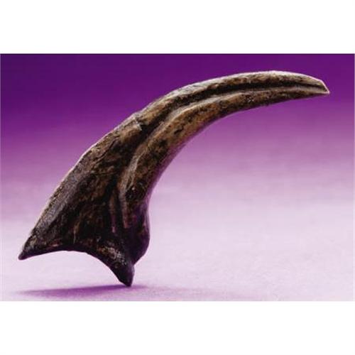 <B>RAPTOR HAND CLAW</B></I><BR> <I>Dromeosaurus albertensis<BR>Cretaceous, Maastrichtian stage<BR>Private ranch, Hell Creek Formation, north of Baker, Montana<BR>Dromeosaurus albertensis</B></I> was the type species for this dinosaur, the first of these late, bird-like Theropods were found in Dinosaur Provincial Park, Alberta, Canada. The claws of these animals were interesting: running swiftly and bird-like on three-toed feet, they kept one toe raised markedly from the ground, which bore an unusual curved claw like the one here. This example has some minor restoration towards the tip and measures 3¼ inches over the curve. As the dromeosaurus was only about the size of a wolf, this is a large claw for this species.<BR>.<BR><BR><b>Shipping:</b> Requires 3rd Party Shipping (<a target="_blank" href="http://www.heritageauctions.com/common/shipping.php">view shipping information</a>)