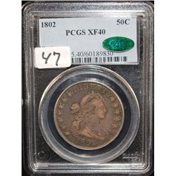 RARE 1802 DRAPED BUST HALF DOLLAR - PCGS XF40 (CAC)