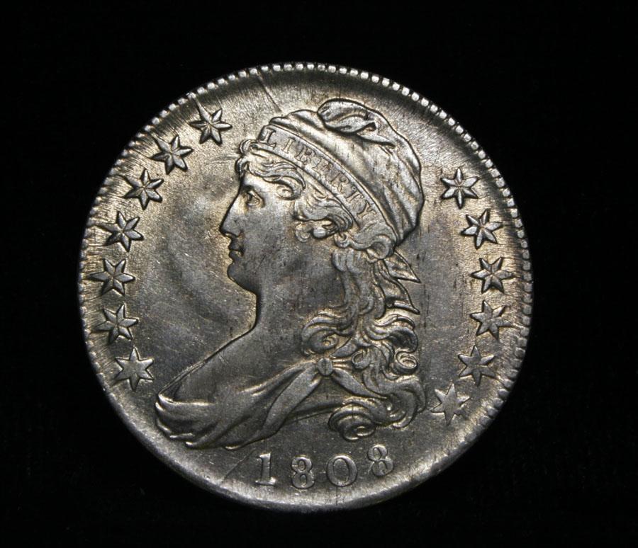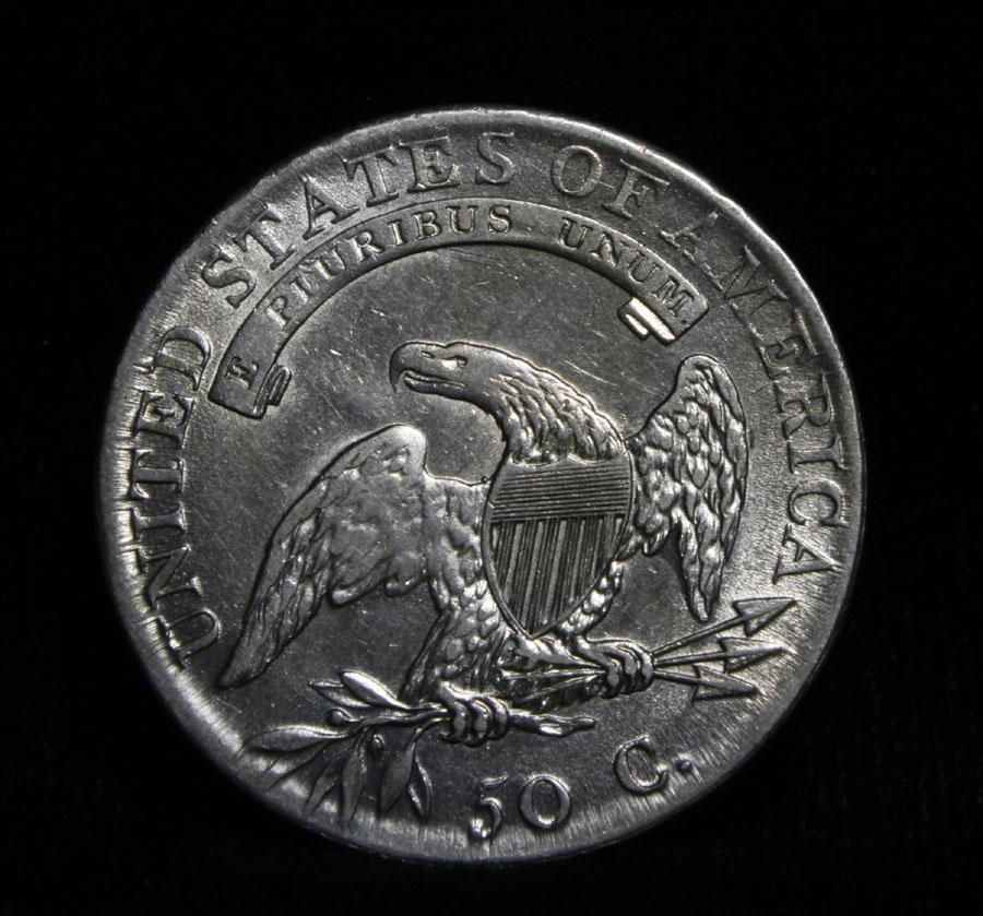 Wonderful Lustrous uncirculated Early Capped Bust Half. Minted a mere 21 years after the formation of the country, this beautiful example has travelled down through more than 200 years without any wear and retaining all of its mint luster. This variety is Overton 106A, which has a rarity 2 and is a very interesting variety with wild die cracks throughout the obverse and a cool center dot at the juncture of the eagles left wing and body. Coin World's Coin Values lists ms62 at $3000 (ms60 is $2500). The Wholesale Greysheet lists ms60 at $1500 and ms63 at $2950. Estimated Value $2250
