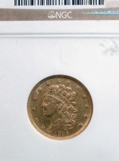 RARE 1836 $5 CLASSIC HEAD GOLD COIN, NGC GRADED MS-61. VERY FEW IN EXISTANCE AT THIS GRADE