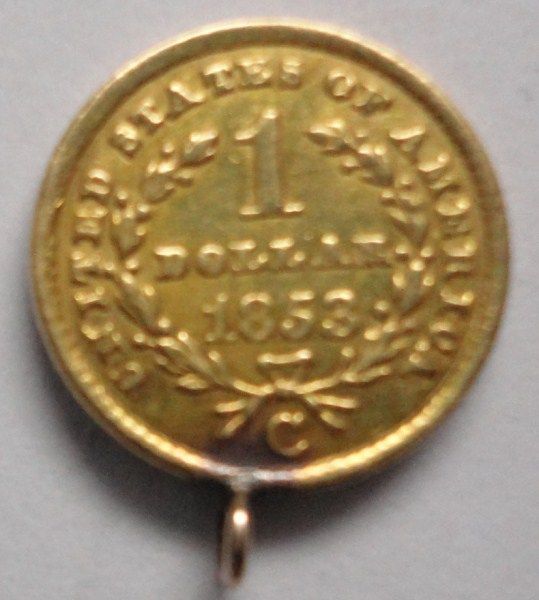 RARE 1853-C $1 GOLD XF DETAILS, LOOPED, REPAIRABLE