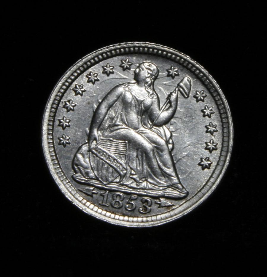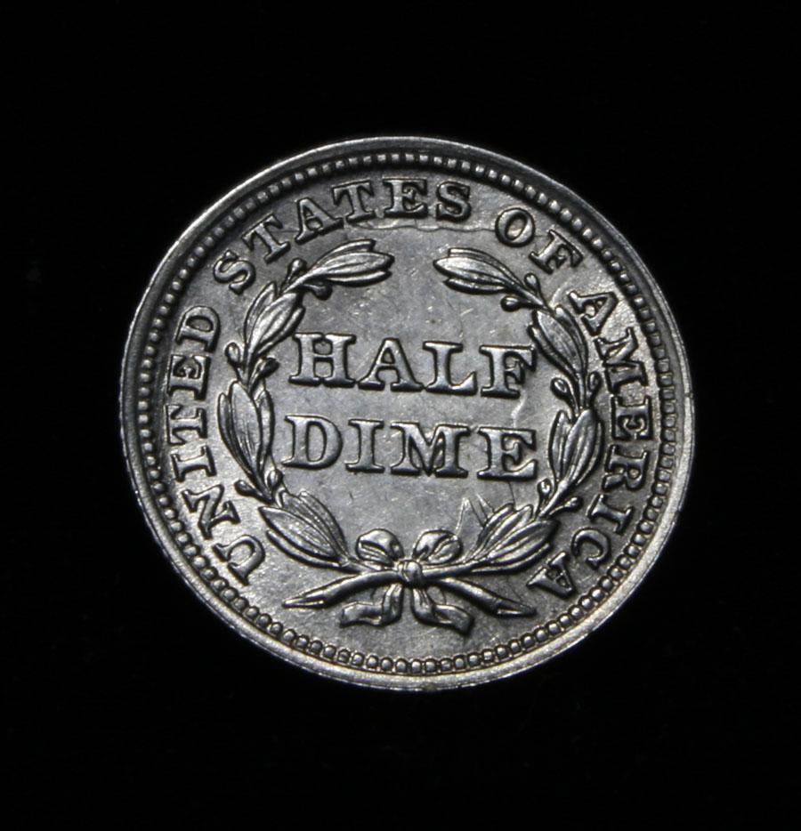 Stunning Half Dime. Blast White, Awesome Strike, with a deep Die Clash on both the Obverse and Reverse. Great Luster. Can't say enough about this coin. Coin World's Coin Values lists ms65 at $1500 and The Wholesale Greysheet lists ms65 at $1275- Estimated Value $1300