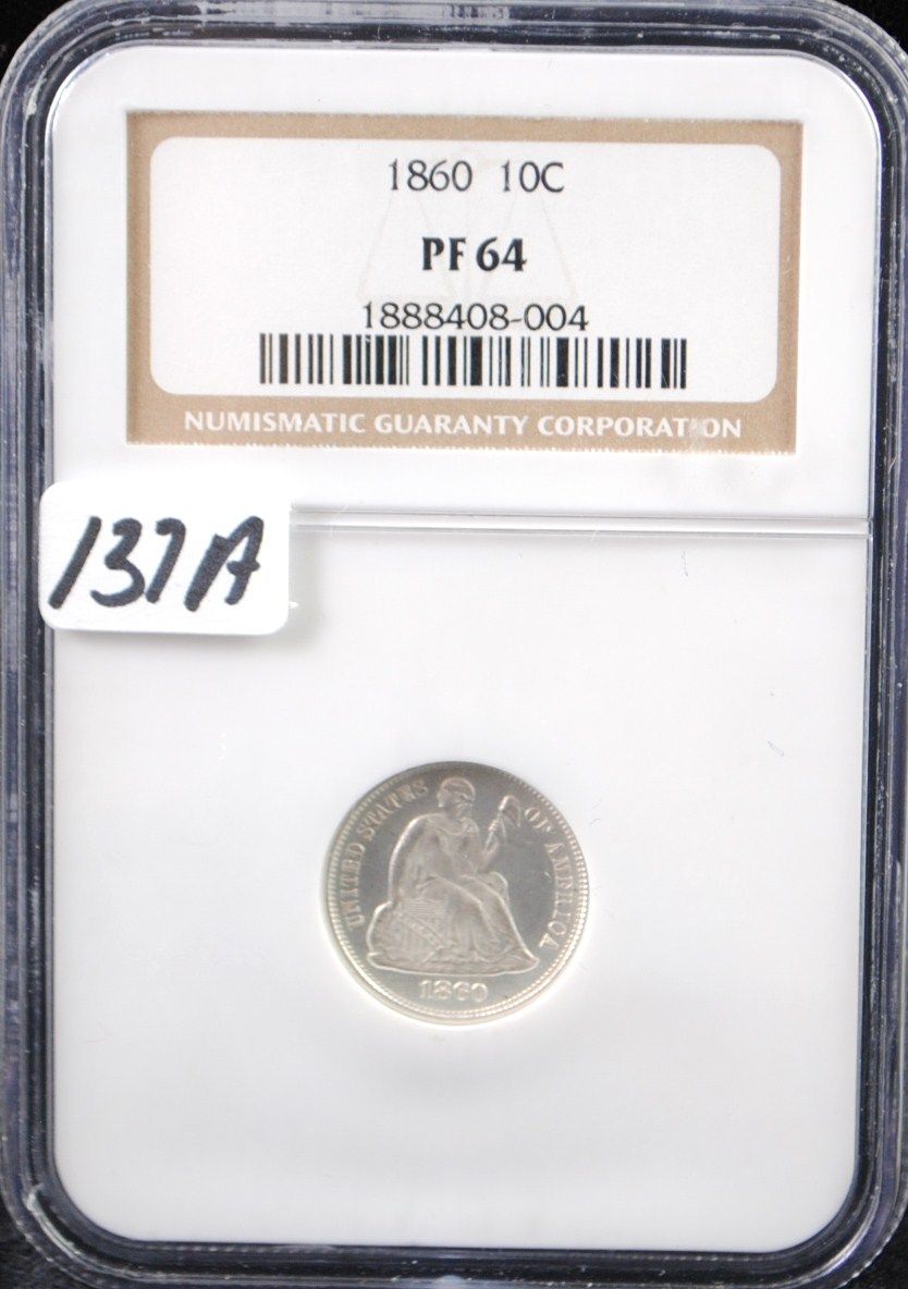 RARE 1860 SEATED LIBERTY DIME - NGC PF64 (COIN WORLD LISTS A MS65 @ $1,500.00)