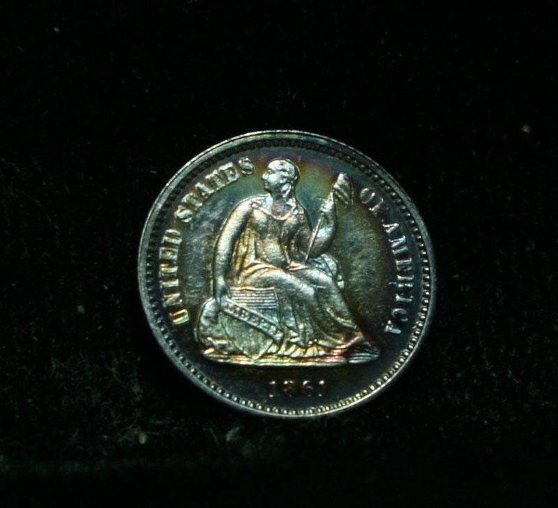 A really exceptional Proof example with spectacular rainbow toning. Even through the toning it is an obvious CAM with great frosted devices. A really great coin. The Original Mintage was 997 pieces. You will not be disappointed. PCGS lists an untoned regular PR65 CAM at $2750 and PR66 CAM at $4000. I feel its a PR66. Estimated Value $4000