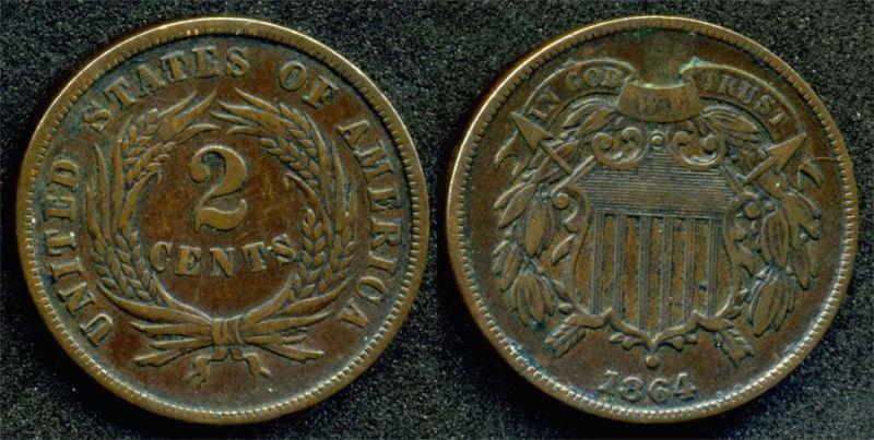 RARE 1864 Civil War 2 Cent Piece - F Grade