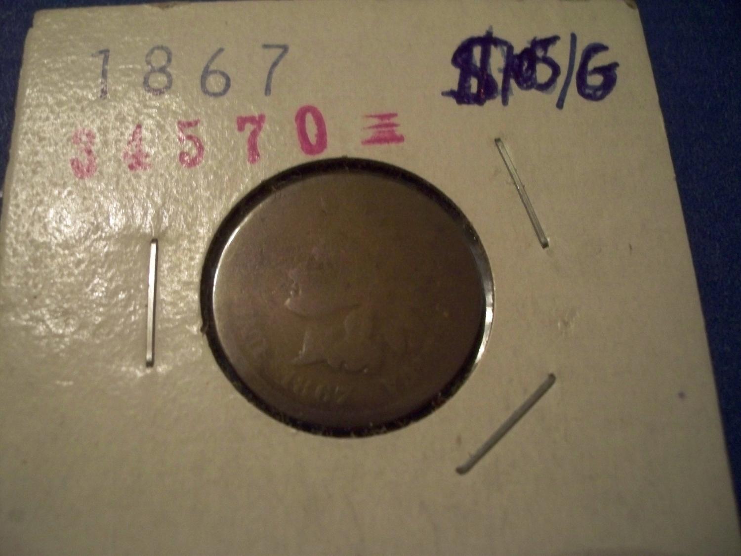 RARE 1867 Bronze Indian Head Penny